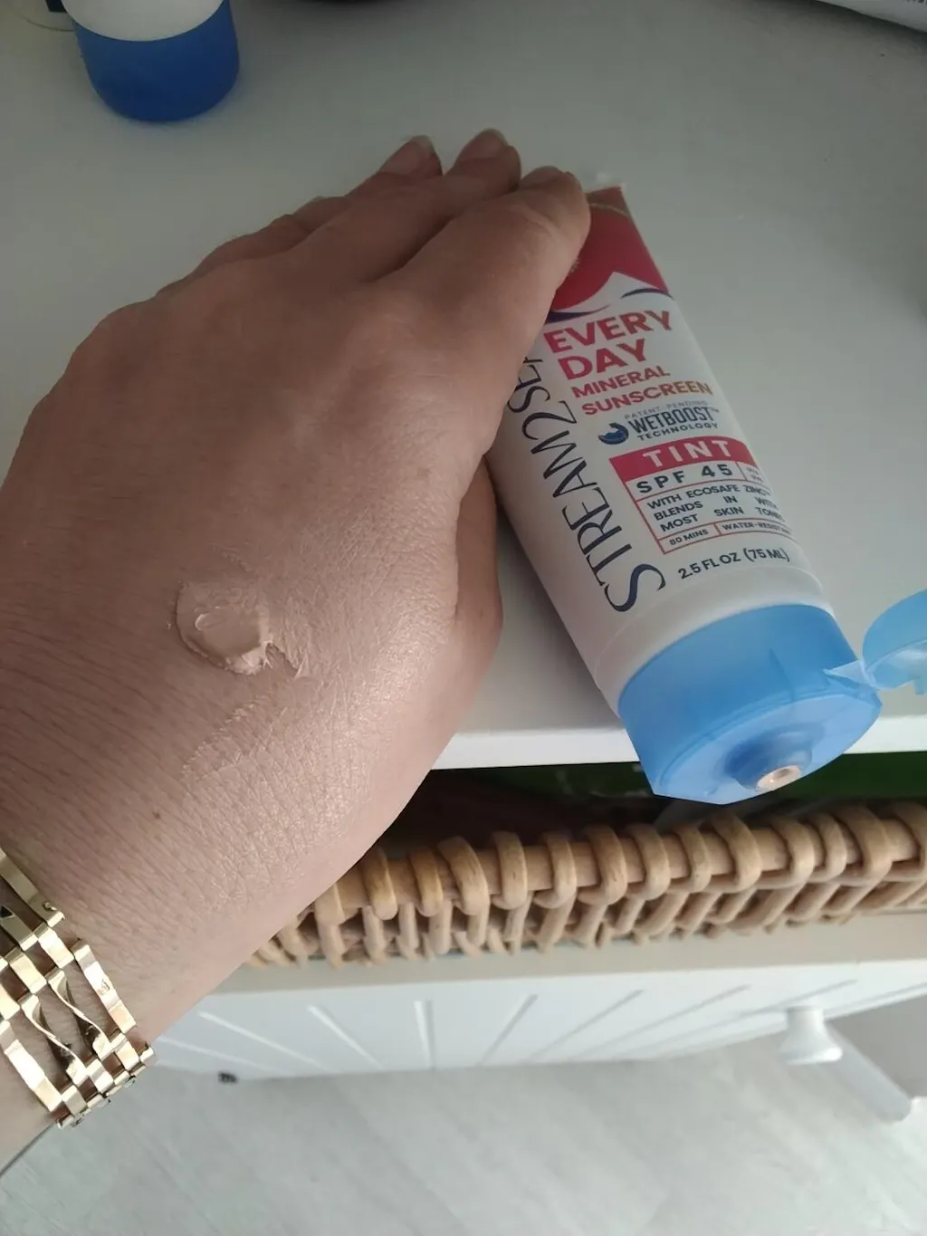 So happy with this product ive ordered 2 more. With having the tint it covers without the initial white marks that are usual of a high factor. I'm going to wear it daily as the weather improves. I'm trying to change all my products to ewg approved, which this is.